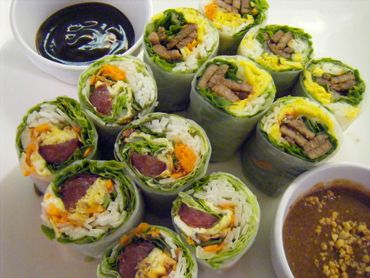 Steamed jasmine rice with choice of grill pork, pork chop, beef, chicken, or tofu with crispy imperial roll. Served with traditional vinaigrette